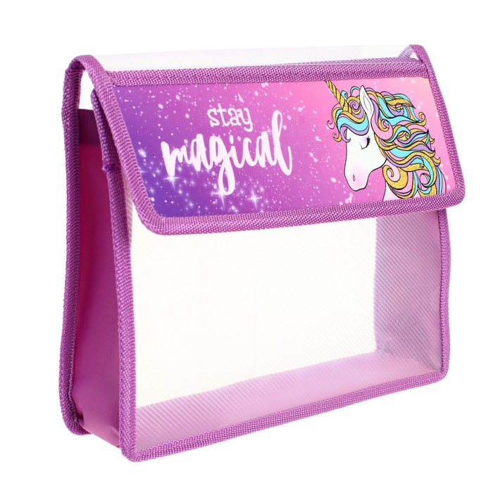 Папка для тетрадей А5 «Единорог», 230×190×50 мм, с клапаном на липучке, пластик/текстиль — Характеристики