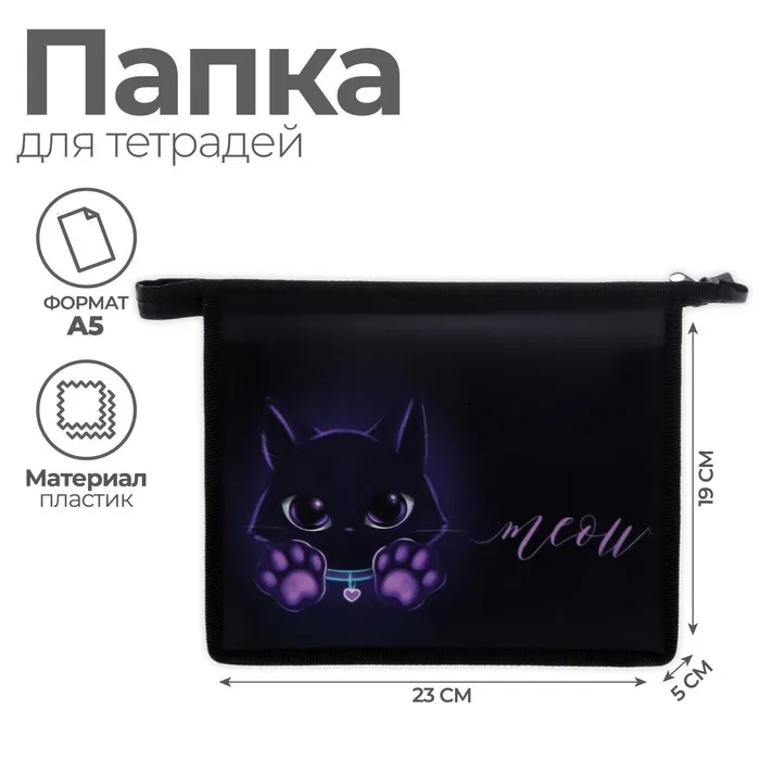 Папка для тетрадей, А5, пластиковая, 19×23×5 см «Котик» — Характеристики