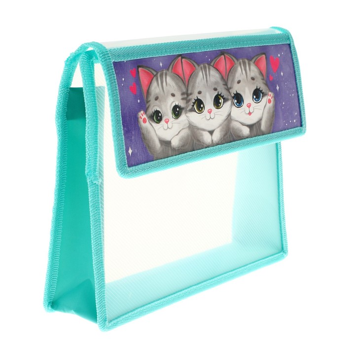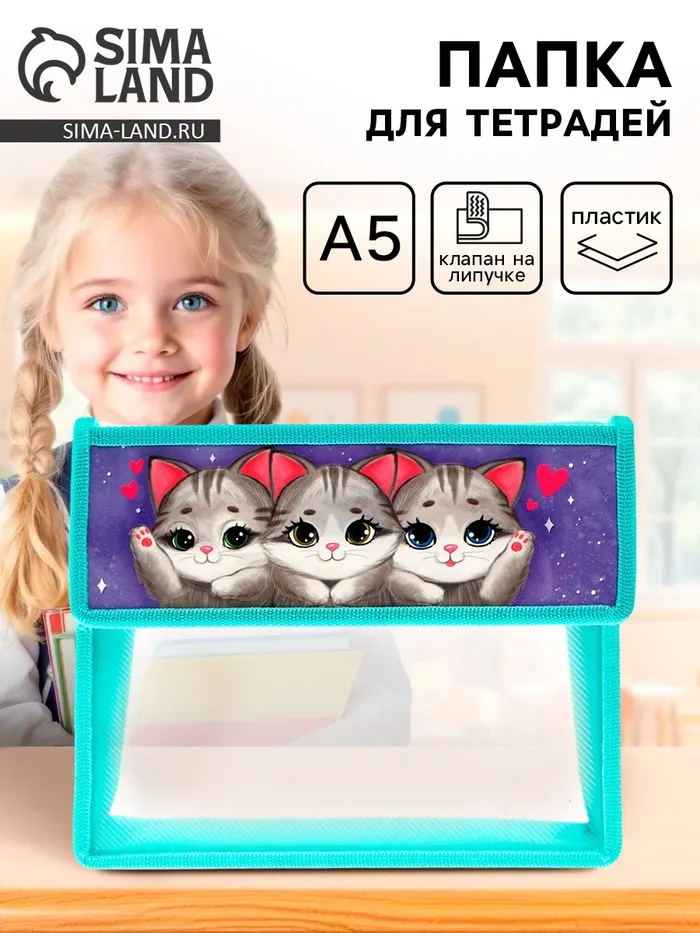 Папка для тетрадей «Котики» А5, 230×190×50 мм, с клапаном на липучке, пластик/текстиль — Характеристики