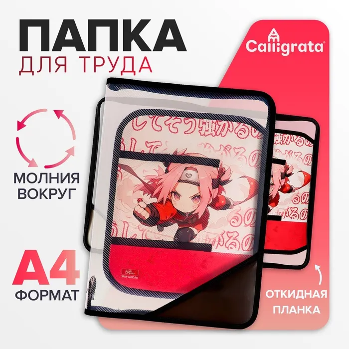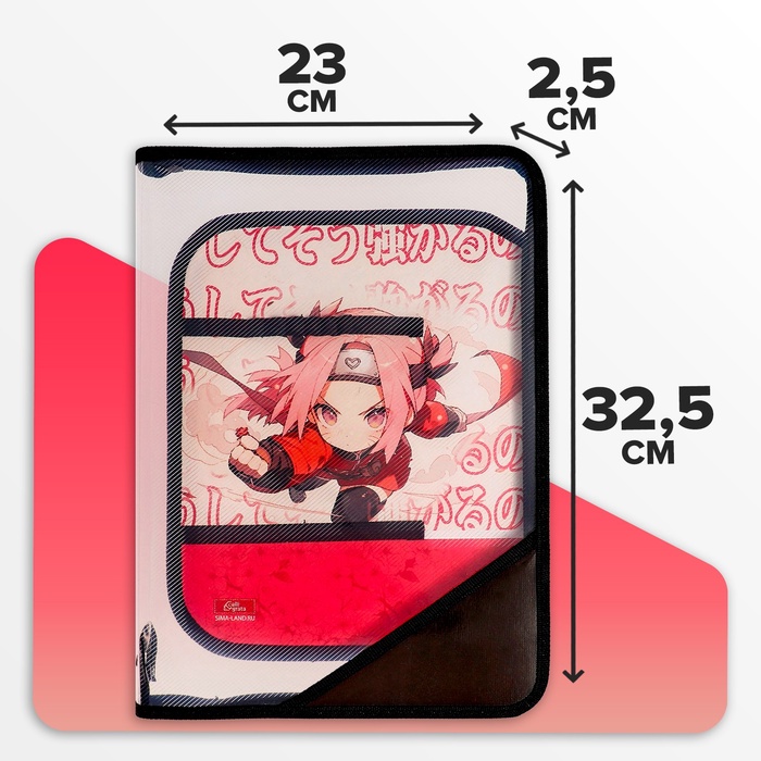 Папка для труда А4, 325×230×25 мм, молния вокруг, откидная планка, пластиковая, «Аниме сакура» — Характеристики