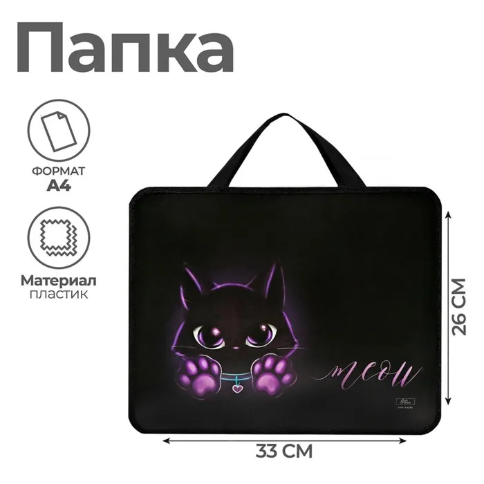 Папка для труда, А4, пластиковая, 33×26×7.5 см «Котик» — Характеристики