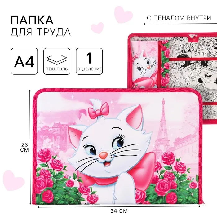 Папка для труда А4 с пеналом, на молнии, текстиль, «Коты аристократы» — Характеристики