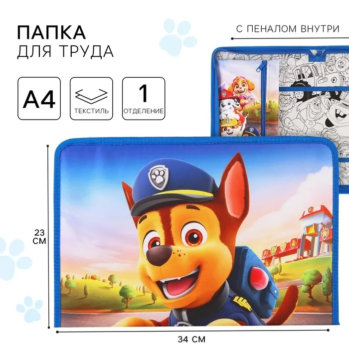 Папка для труда А4 с пеналом, на молнии, текстиль, «Щенячий патруль» — Характеристики