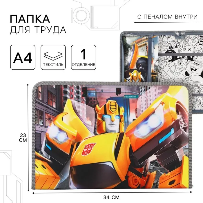 Папка для труда А4 с пеналом, на молнии, текстиль, «Трансформеры» — Характеристики