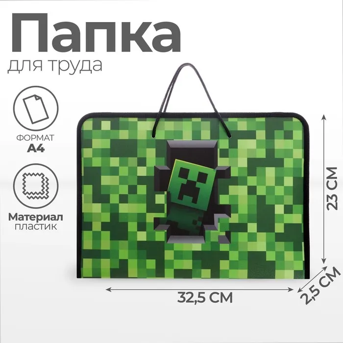 Папка для труда А4 с ручками «Пиксели», 325×230×25 мм, молния вокруг, откидная планка, пластиковая — Характеристики