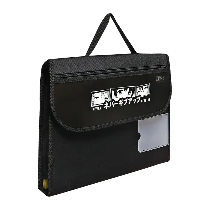 Организуйте учебный процесс легко и стильно! Черная текстильная папка А4 с ручками - это идеальный аксессуар для школьников, любящих аниме. Ваша креативность теперь найдёт удобное место на каждом уроке труда.