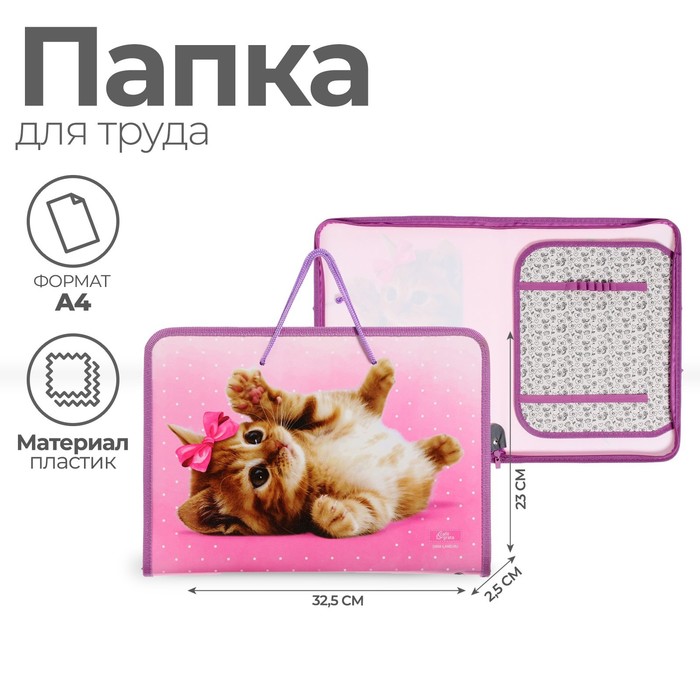Папка для труда А4 с ручками «Самая милая», 325×230×25 мм, молния вокруг, откидная планка, пластиковая — Характеристики