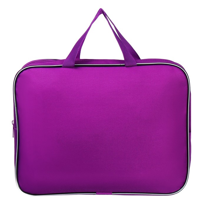 Папка текстильная на молнии с ручками, формат A4+. Размер 270 х 70 х 350 мм. Материал: износо-морозостойкий водоотталкивающий 100% полиэстер. Предназначена для транспортировки учебных принадлежностей, документов и различных аксессуаров. Имеет одно большое отделение с расширением и карманом внутри, застежка на молнии с мягким ходом. Для комфортной переноски ручки папки выполнены из прочной стропы