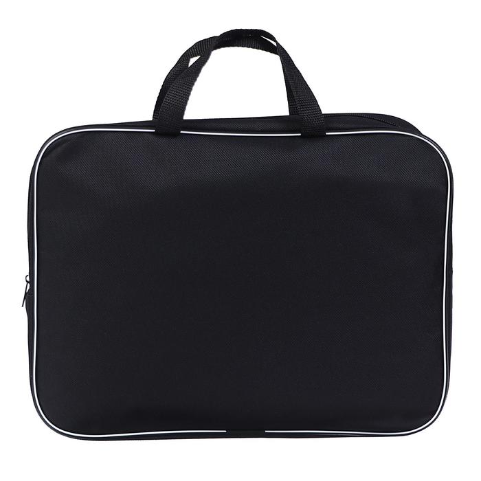 Папка текстильная на молнии с ручками, формат A4+. Размер 270 х 70 х 350 мм. Материал: износо-морозостойкий водоотталкивающий 100% полиэстер. Предназначена для транспортировки учебных принадлежностей, документов и различных аксессуаров. Имеет одно большое отделение с расширением и карманом внутри, застежка на молнии с мягким ходом. Для комфортной переноски ручки папки выполнены из прочной стропы