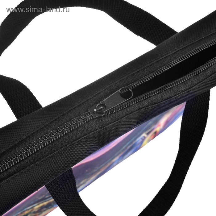 Папка текстильная на молнии с ручками, формат A4+. Размер 270 х 70 х 350 мм. Материал: износо-морозостойкий водоотталкивающий 100% полиэстер. Предназначена для транспортировки учебных принадлежностей, документов и различных аксессуаров. Имеет одно большое отделение с расширением и карманом внутри, застежка на молнии с мягким ходом. Для комфортной переноски ручки папки выполнены из прочной стропы