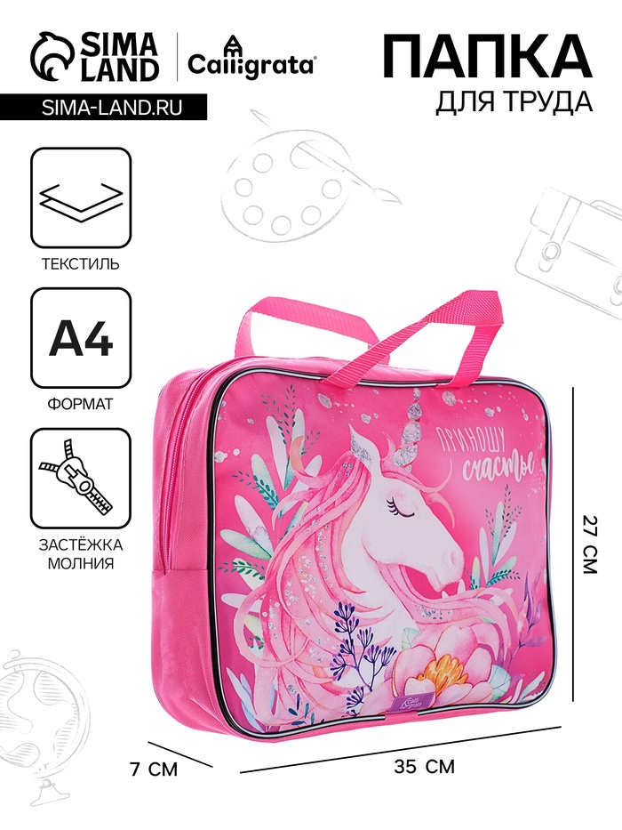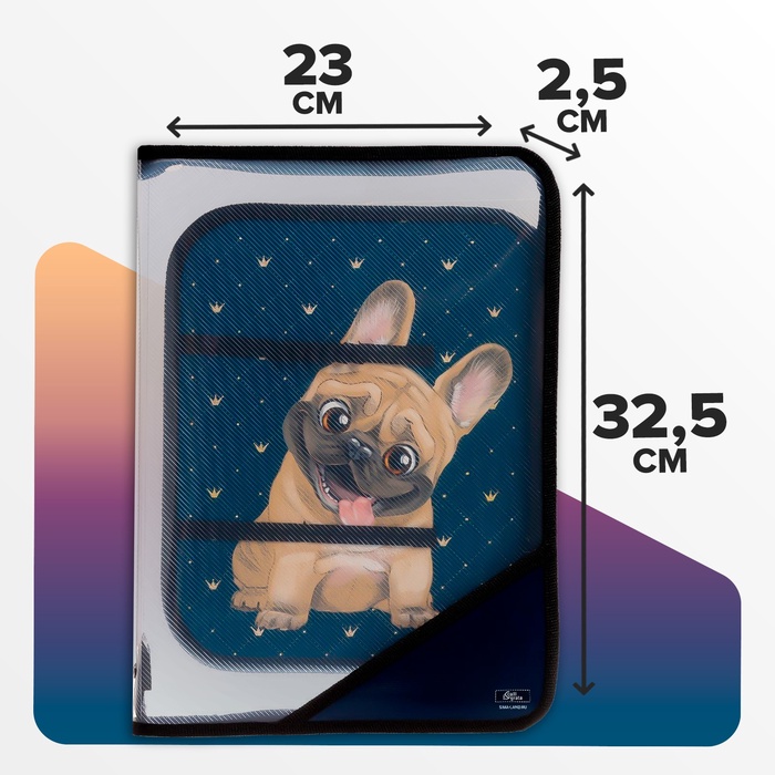 Папка для труда «Бульдожка» А4, 325×230×25 мм, молния вокруг, откидная планка, пластиковая — Характеристики