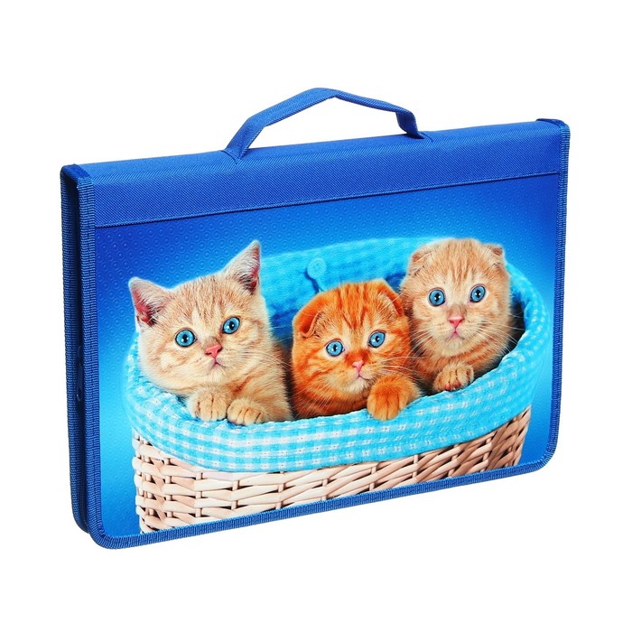 Папка д/труда_ А4 с ручками молния вокруг лам карт 31Тр44р Calligrata объем Котята в корзине 1020643 — Характеристики