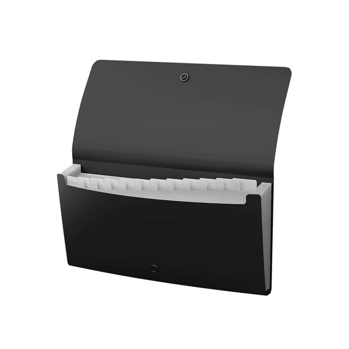 Папка – картотека с 12 отделениями формата Check size из высококачественного пластика с текстурой поверхности "песок", на которой не видно отпечатков пальцев и мелких царапин. Предназначена для хранения, систематизации и транспортировки документов.