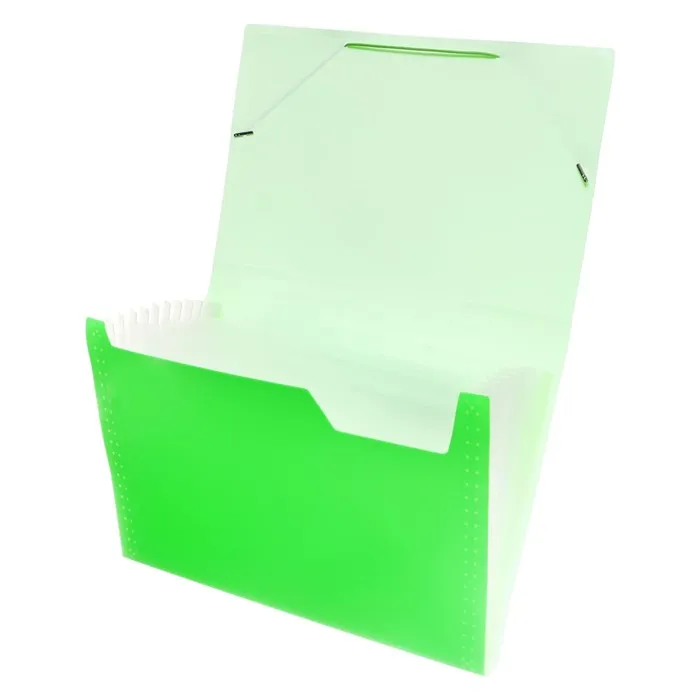 Папка картотека А4, Calligrata «Неон», 13 отделений, пластиковая, 700 мкм, салатовая, резинка в цвет — Характеристики
