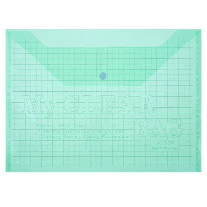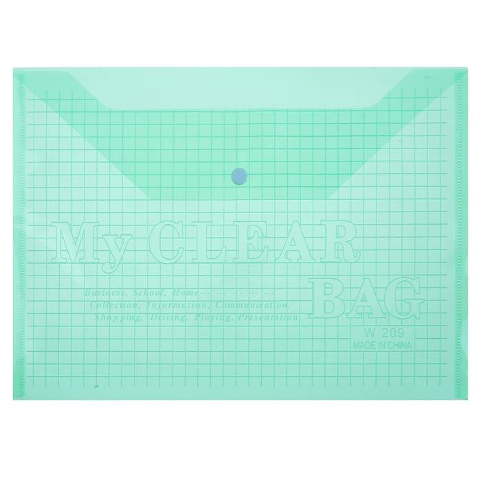 Папка-конверт на кнопке, А4, 120 мкм, Calligrata "Клетка", прозрачный, зелёный — Характеристики