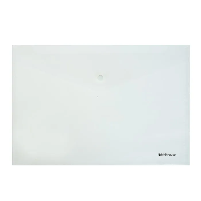 Папка-конверт на кнопке формата А4 из высококачественного прозрачного пластика с текстурой поверхности "апельсиновая корка", на которой не видно отпечатков пальцев и мелких царапин.