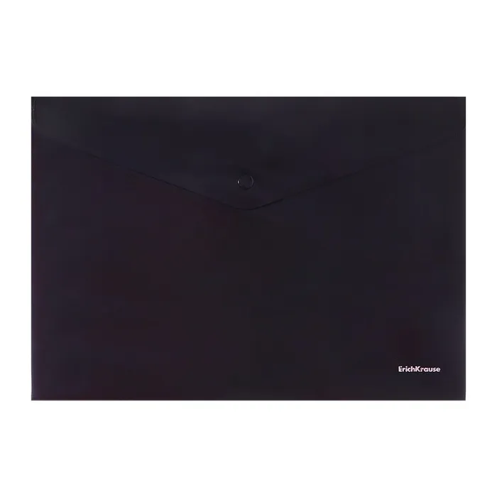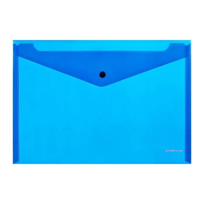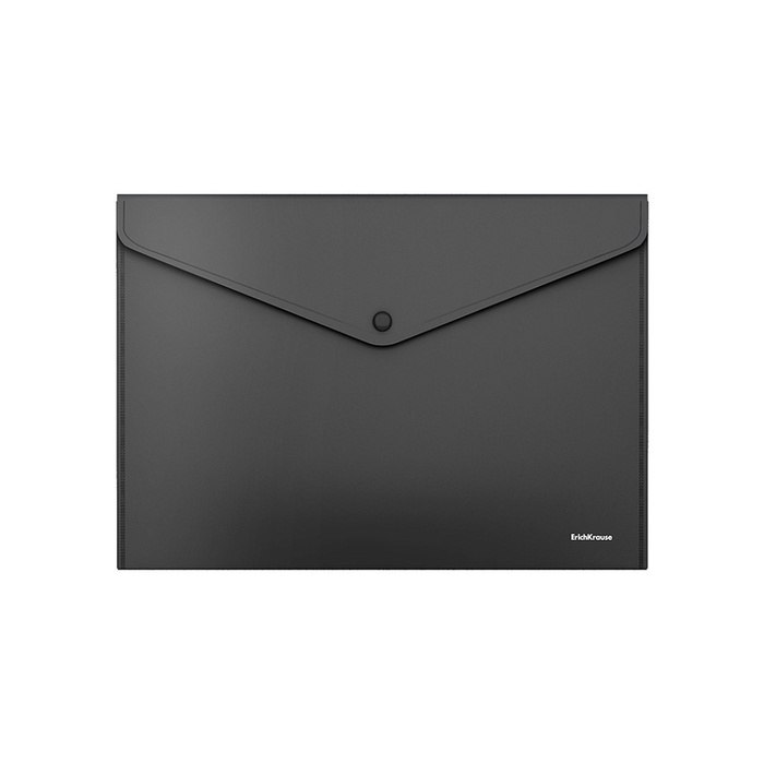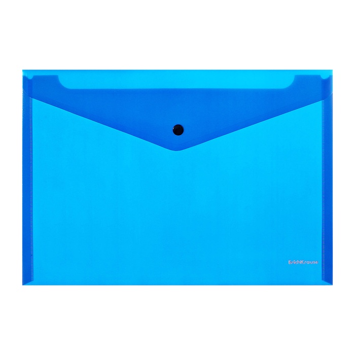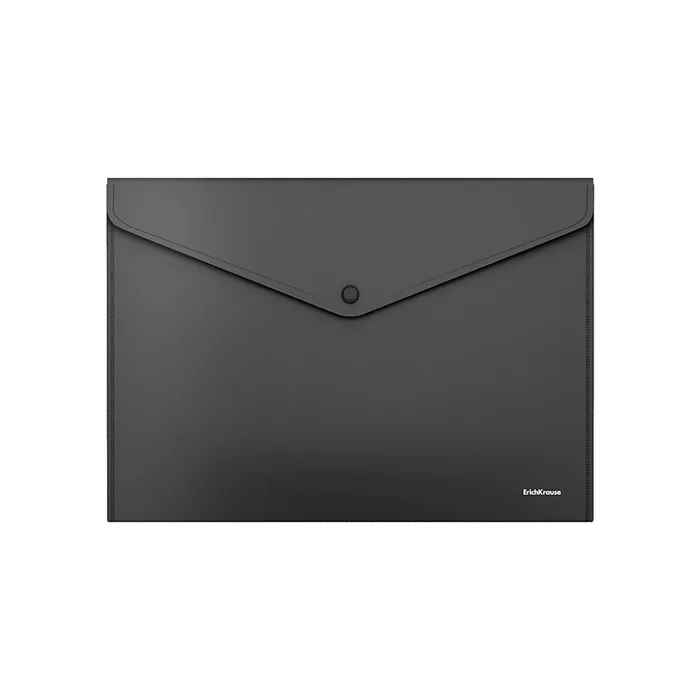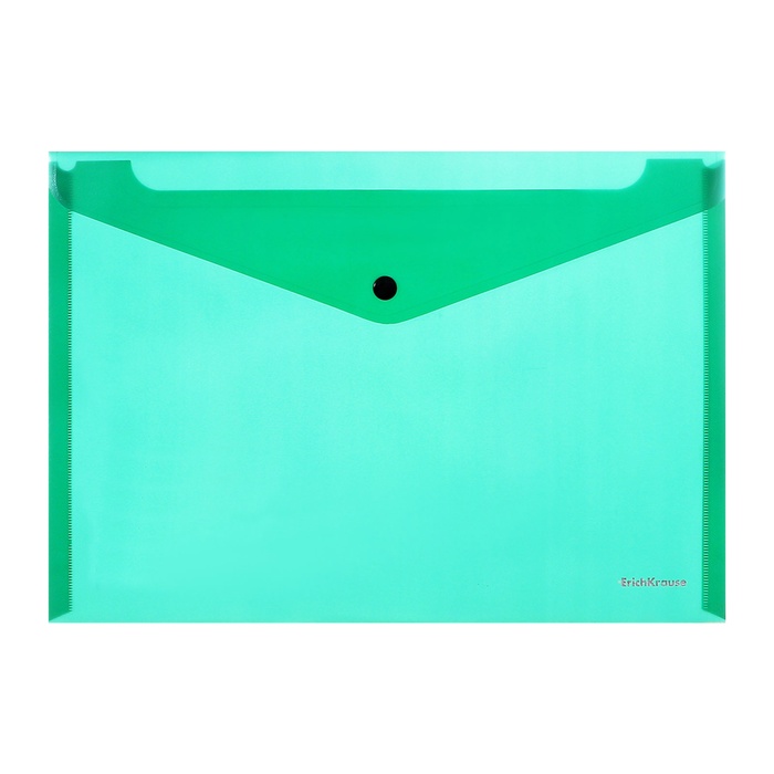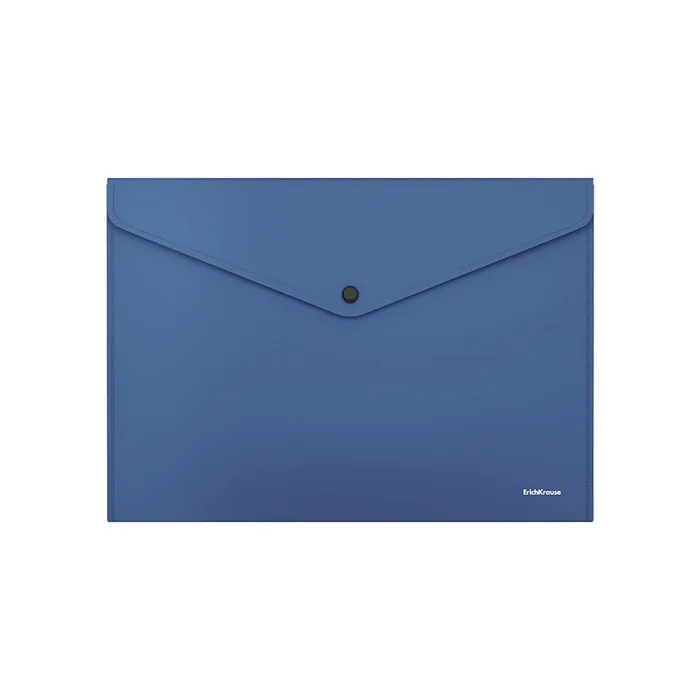 Папка-конверт на кнопке формата А4 из высококачественного непрозрачного пластика с текстурой поверхности "апельсиновая корка", на которой не видно отпечатков пальцев и мелких царапин.