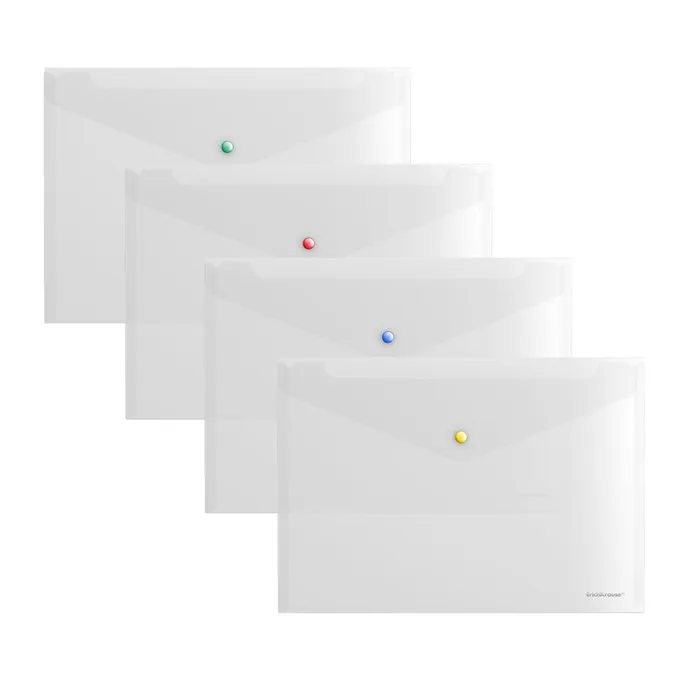 Папка-конверт на кнопке А4, 160 мкм, ErichKrause Glossy Clear, глянцевая, с цветной кнопкой, прозрачная, микс — Характеристики