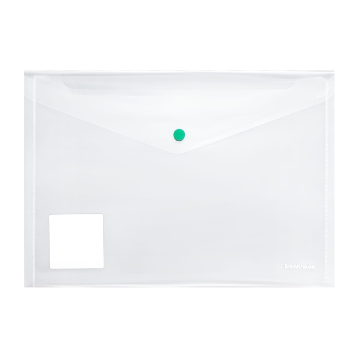 Папка-конверт на кнопке формата А4 из высококачественного прозрачного пластика с текстурой поверхности "зеркало", на которой не видно отпечатков пальцев и мелких царапин.