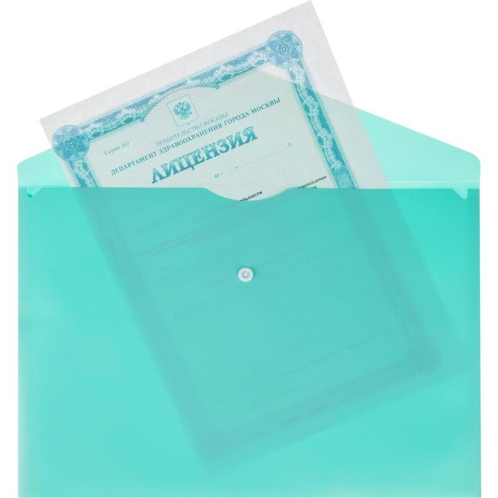 Папка-конверт на кнопке А4, 180 мкм, Calligrata Pastel, полупрозрачная, светло-мятный — Характеристики