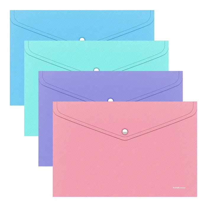 Папка-конверт на кнопке А4, 180 мкм, ErichKrause Diagonal Pastel, с тиснением, непрозрачная, микс — Характеристики