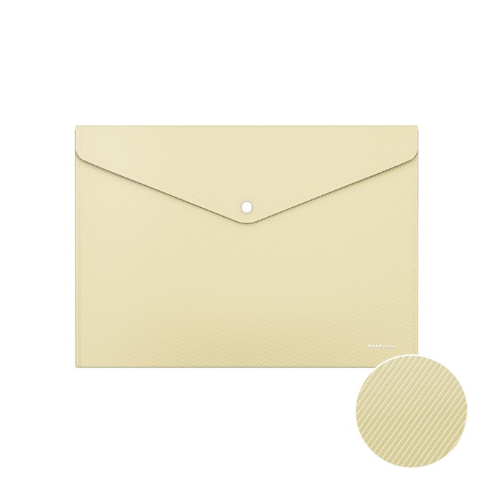 Папка-конверт на кнопке формата А4 из высококачественного непрозрачного пластика с текстурой поверхности "диагональ", на которой не видно отпечатков пальцев и мелких царапин.