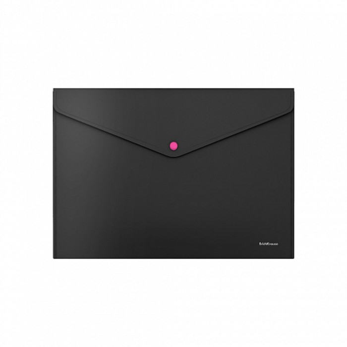 Папка-конверт на кнопке А4, 180 мкм, ErichKrause Matt Accent, тиснение «песок», с неоновой кнопкой, непрозрачная, черная, микс — Характеристики