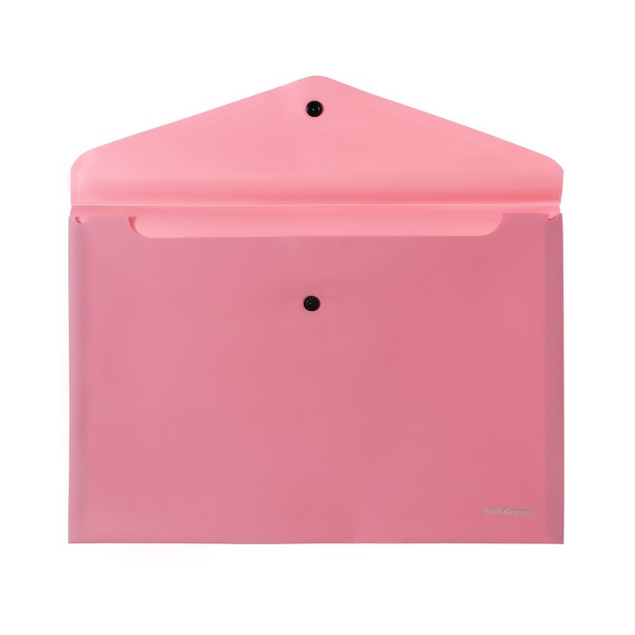 Папка-конверт на кнопке формата А4 из высококачественного непрозрачного пластика с текстурой поверхности "софт-тач", на которой не видно отпечатков пальцев и мелких царапин. Предназначена для хранения и транспортировки небольшого количества документов. Цвет папки - ассорти: бежевый, голубой, розовый, фиолетовый. Надежная застежка-кнопка обеспечивает быстрый доступ к документам. Папка вмещает до 120 бумажных листов. Размер - 232х333мм, толщина - 0.18мм. Код и баркод на каждой единице товара