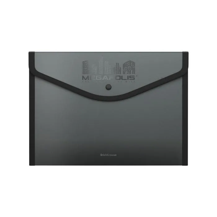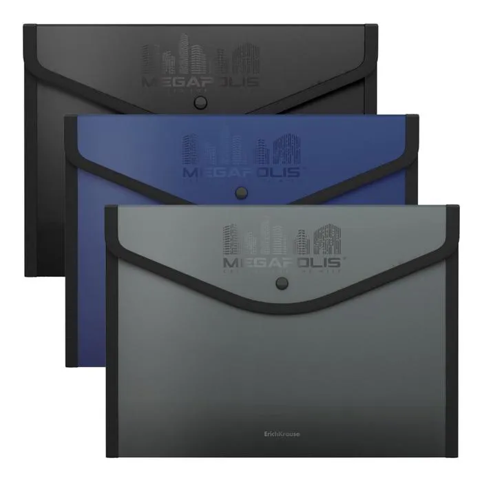 Папка-конверт на кнопке А4, 600 мкм, ErichKrause Megapolis, обшитая, непрозрачная, микс — Характеристики