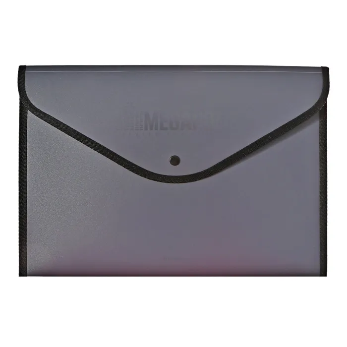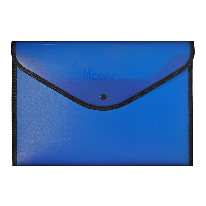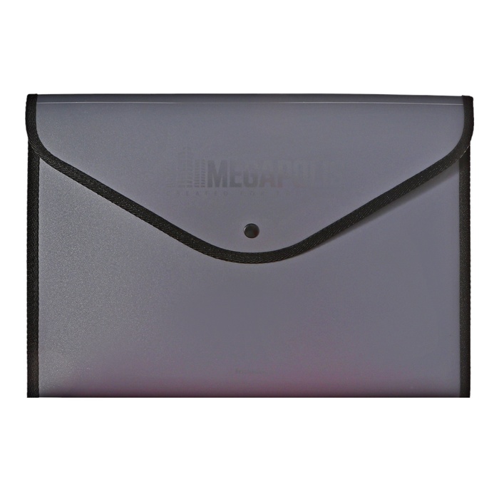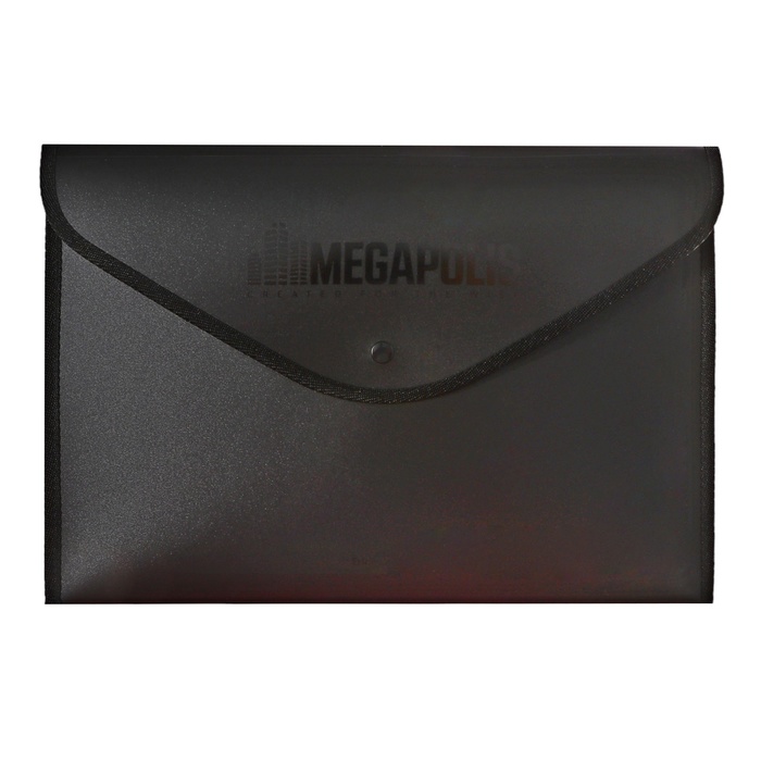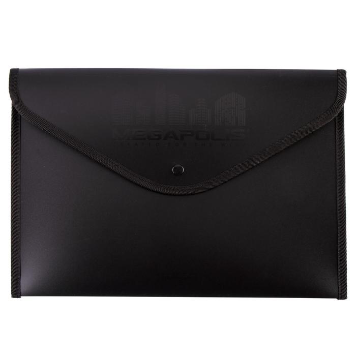 Папка-конверт на кнопке формата А4+ из высококачественного непрозрачного пластика с текстурой поверхности "песок", на которой не видно отпечатков пальцев и мелких царапин.