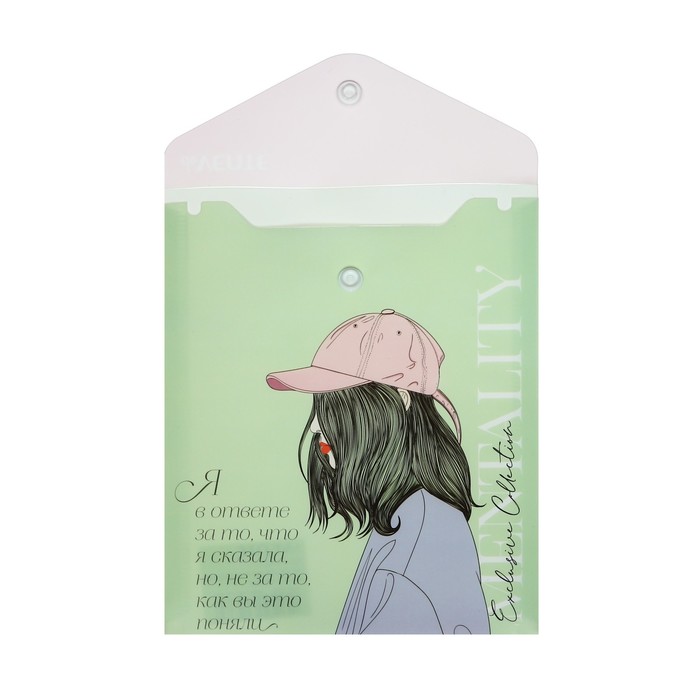 Папка-конверт на кнопке deVENTE. Mentality A6 (140 x 170 мм) 180 мкм, непрозрачная с рисунком, индивидуальная маркировка, 2 дизайна ассорти.