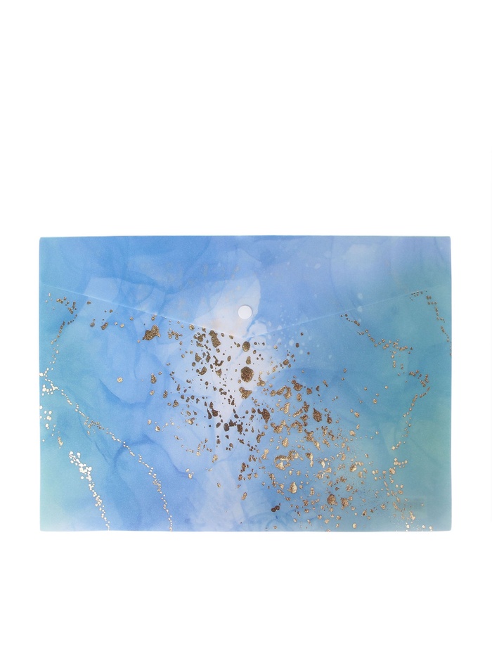 - Дизайн и цвет: Разноцветный мраморный узор с золотом делает папку заметной и стильной. Отсутствие рисунка позволяет использовать ее в деловой среде или учебных заведениях.