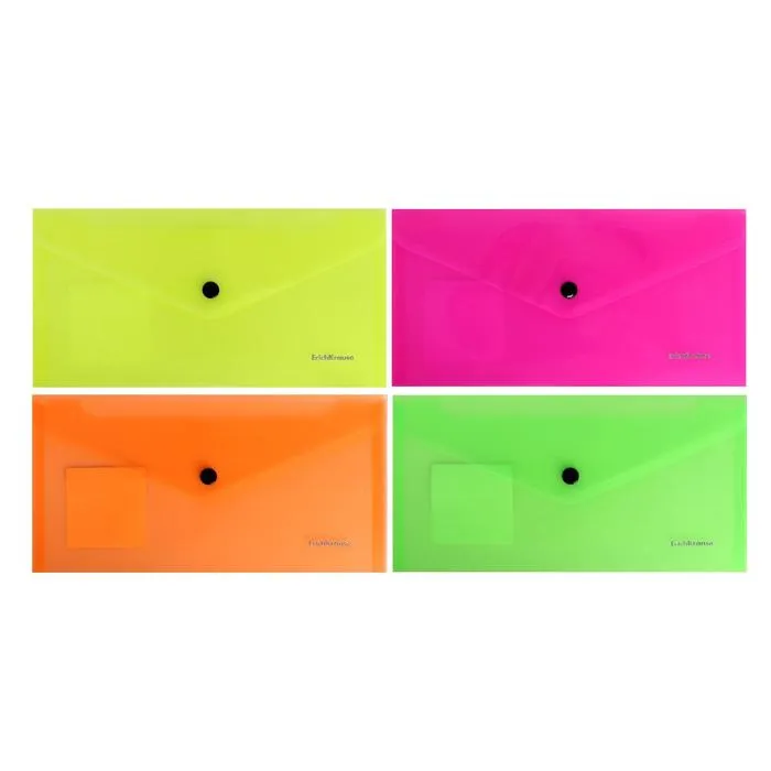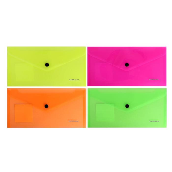 Папка-конверт на кнопке Travel (255х130мм), 180 мкм, ErichKrause Glossy Neon, глянцевая, полупрозрачная, микс — Характеристики