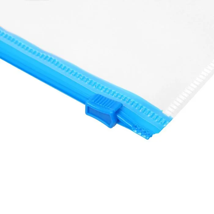 Изготовлена из прочного прозрачного пластика толщиной 150 мкм с гладкой фактурой. Формат А5 (245х190 мм). Герметичная застежка-зиплок защищает документы от механических повреждений, а также пыли и влаги. Цвет молнии – синий.