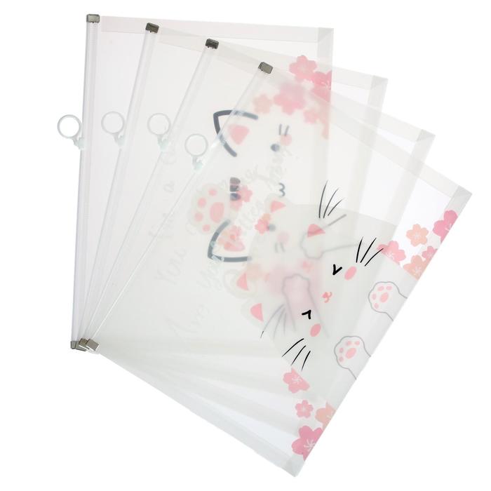 Папка-конверт на ZIP-молнии Calligrata «Кошки» А4, 180 мкм, прозрачная, МИКС — Характеристики