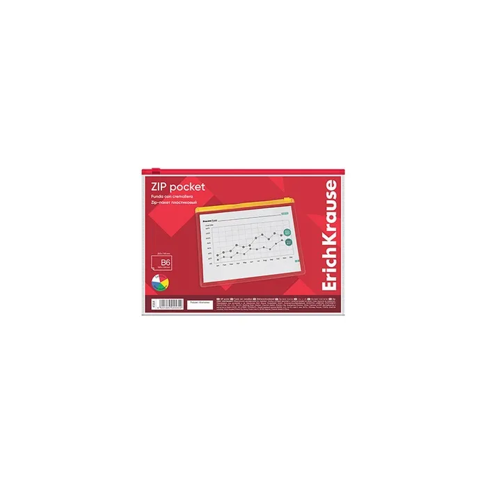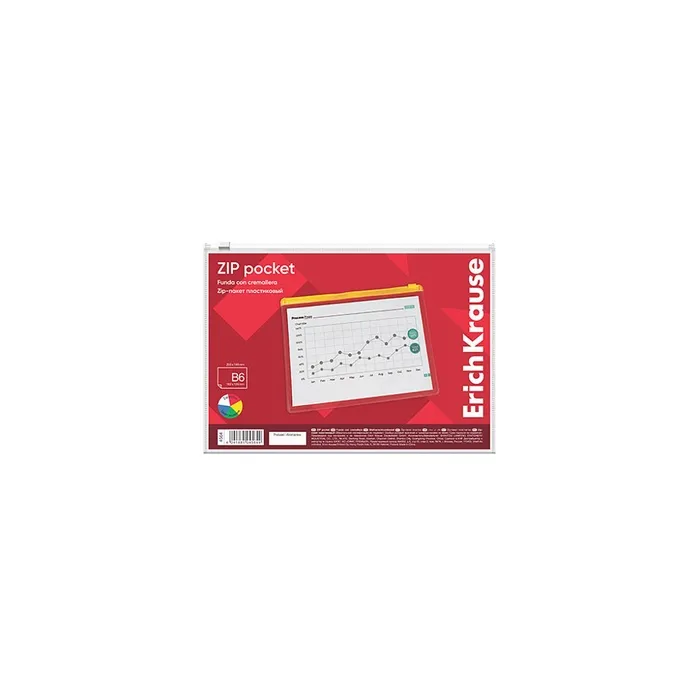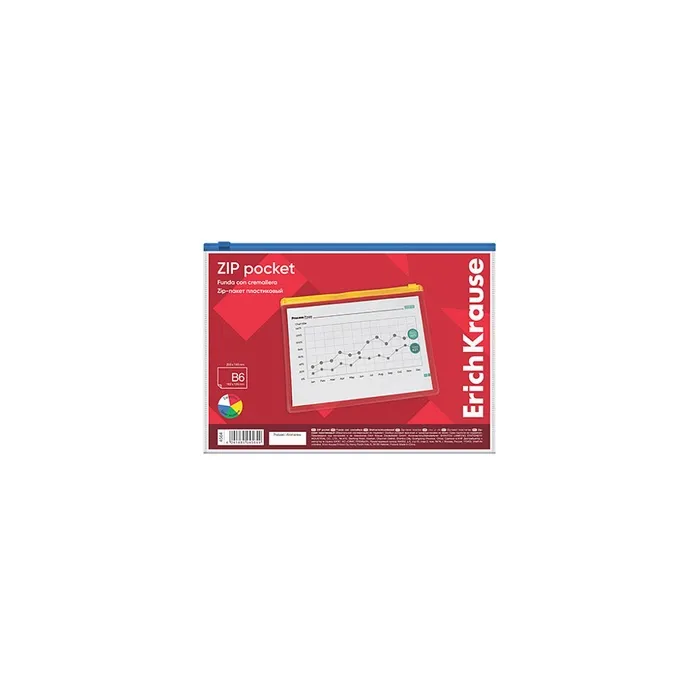 Папка-конверт на ZIP-молнии В6 140 мкм, ErichKrause PVC Zip Pocket, прозрачная микс, до 100 листов — Характеристики