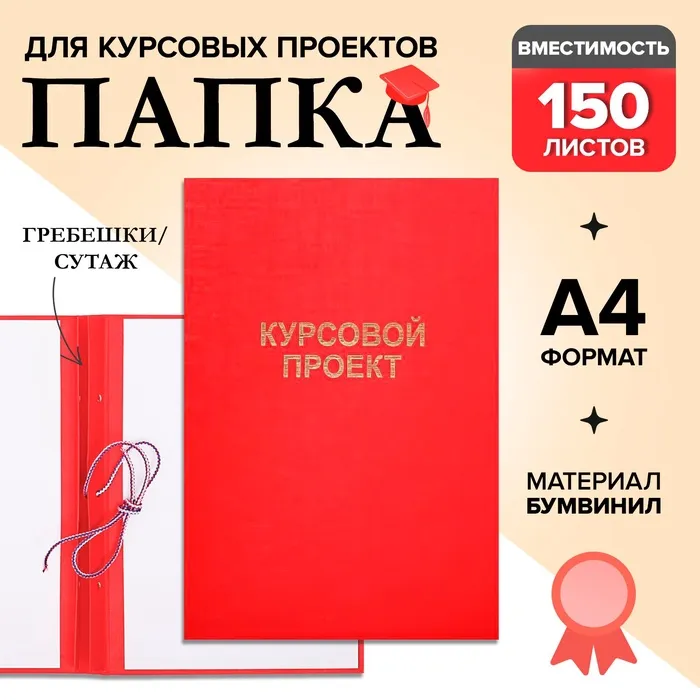 Папка «Курсовой проект» А4, бумвинил, гребешки/сутаж, без бумаги, красная, (вместимость до 150 листов) — Характеристики