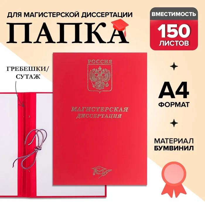 Папка "Магистерская диссертация" бумвинил, гребешки/сутаж, без бумаги, цвет красный (вместимость до 300 листов) — Характеристики
