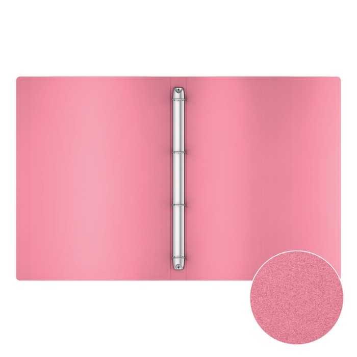 Пластиковая папка на кольцах формата А4 из высококачественного пластика с текстурой поверхности "песок", на которой не видно отпечатков пальцев и мелких царапин.