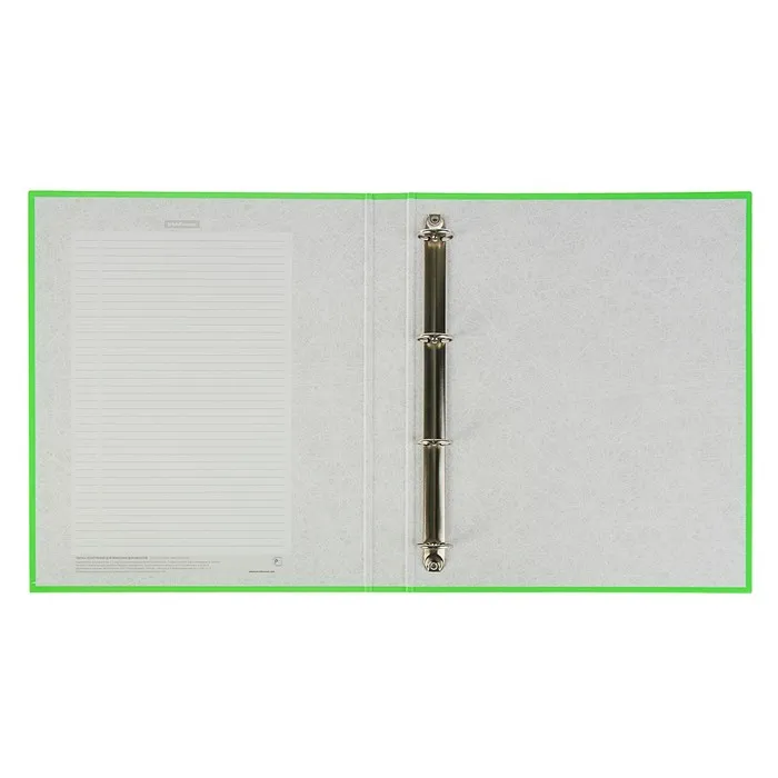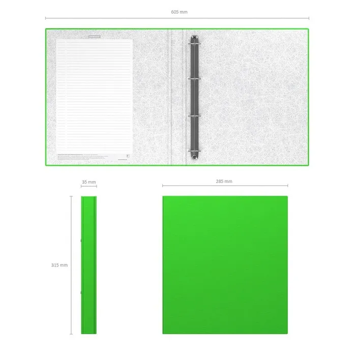 Папка - регистратор формата А4 снабжена механизмом на O-кольцах диаметром 25 мм. Изготовлена из картона толщиной 1,75 мм, покрытого бумагой со структурным тиснением и водоотталкивающей поверхностью. Корешок шириной 35 мм. Вместительность до 250 листов бумаги плотности 80 г/м². На форзаце есть шаблон для оглавления. Удобна для проведения презентаций, представления документации на семинарах. Коллекция представлена в ярких неоновых цветах.