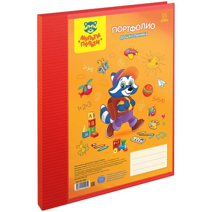 Папка-портфолио на 2-х кольцах «Мульти-Пульти» формата А4 для дошкольника предназначена для хранения всевозможных грамот, дипломов, фотографий и других достижений ребенка в детском саду или в подготовительных группах. Папка изготовлена из пластика и имеет кольцевое крепление, с помощью которого крепятся 10 файлов. Вкладыши покупаются отдельно или можно дома совместно с ребенком сделать своими руками. Для детей старше 3-х лет.Формат: А4,Цвет: красный с рисунком.