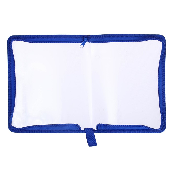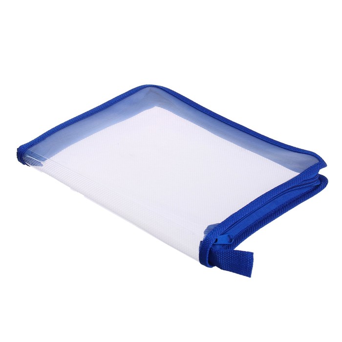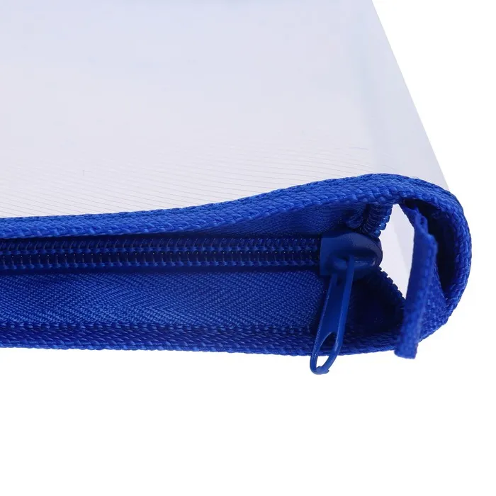 Папка на молнии с 3-х сторон А5, 450мкм, прозрачная, с синим кантом