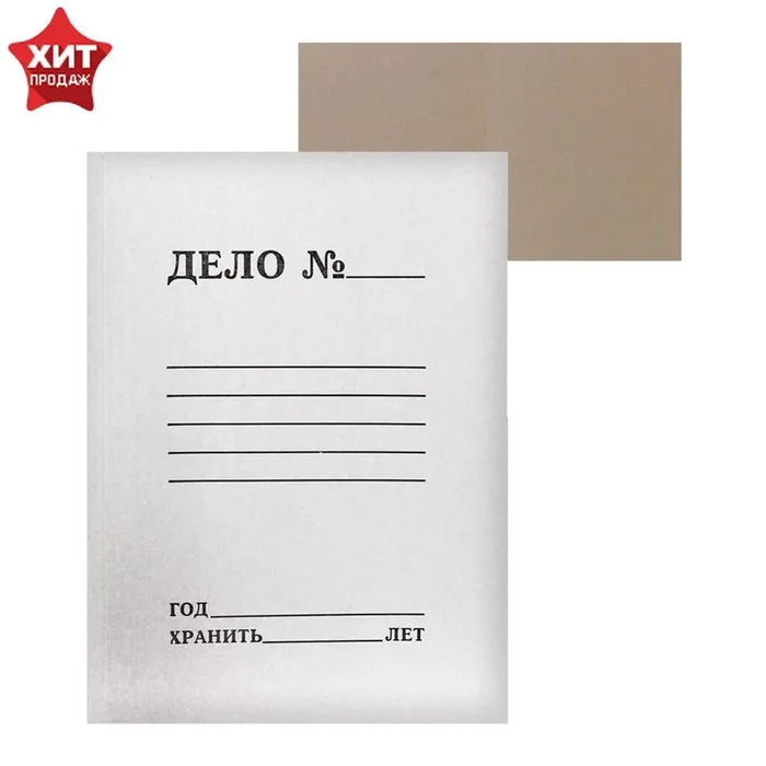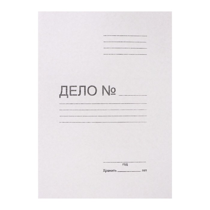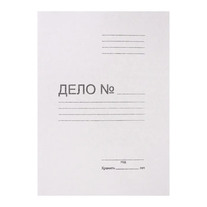 Папка-обложка серии «Дело» формата А4 предназначена для хранения бумаг. Изделие размером 310 х 220 мм выполнено из немелованного картона белого цвета, плотностью 380 г/м2. Ширина корешка составляет 30 мм. Отсутствие скоросшивателя позволяет организовать хранение бумаг без использования дырокола. На лицевой стороне располагаются поля для надписей. Папка вмещает до 200 листов.