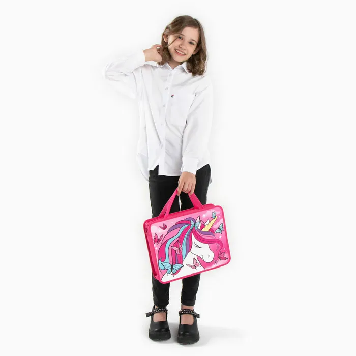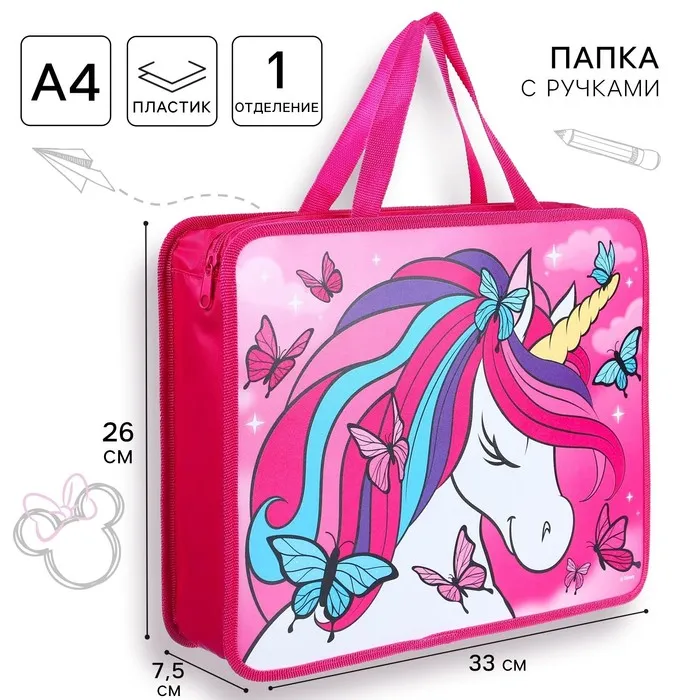 Папка пластиковая с ручками А4, на молнии, 7.5×33×26 см, «Минни Маус и единорог» — Характеристики