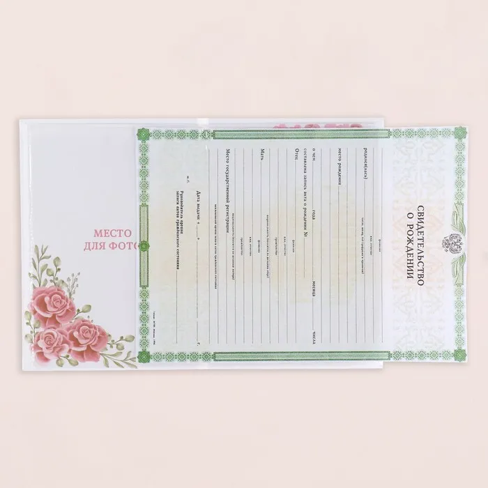 Папка под свидетельство о рождении, А5 «Розы»