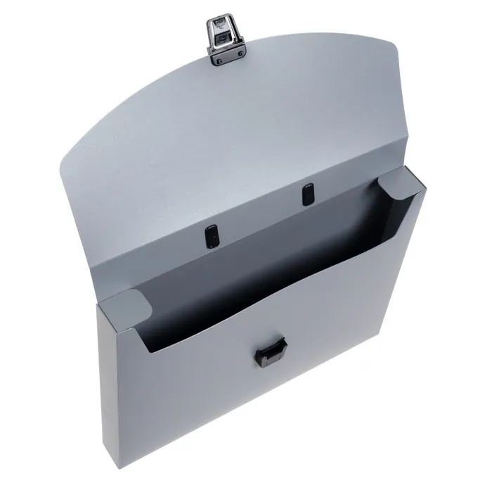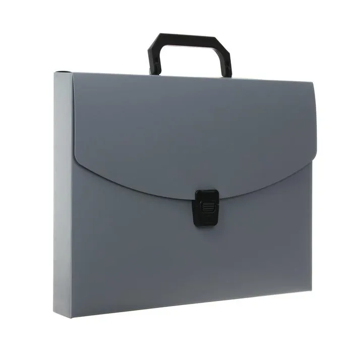 Формат: А4;Материал: пластик;Толщина материала: 700 мкм;Тип застёжки: защёлка;Формат: А4;Цвет:серый;Количество отделений: 1;Наличие карманов: нет;Количество ручек: 1;Индивидуальная упаковка: пакет.