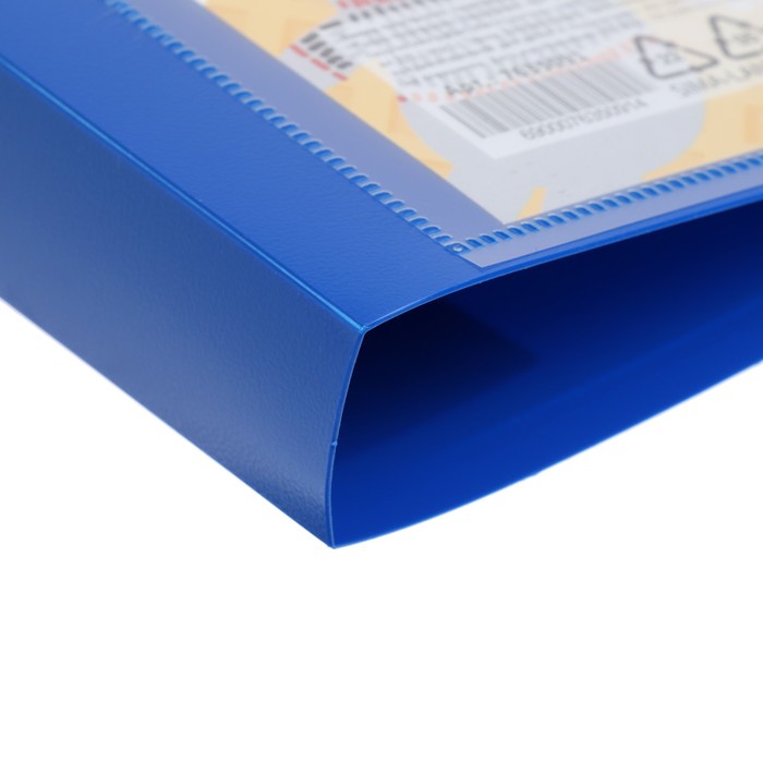 Портфолио имеет кольцевое крепление, с помощью которого крепятся до 30 файлов. в нём можно хранить всевозможные грамоты, дипломы, фотографии и другие достижения школьника.