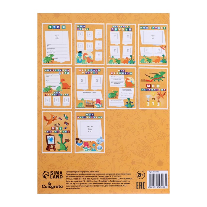 Папка Портфолио ДОШКОЛЬНИКА 10л, внутр.блок (ТИТУЛЬНЫЙ ЛИСТ, СОДЕРЖАНИЕ, 9 РАЗД) Calligrata — Характеристики