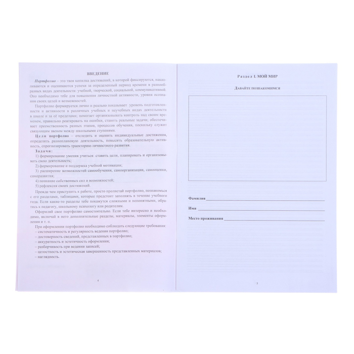 Листы разделители для школьного портфолио «Портфолио школьника», 6 листов, А4