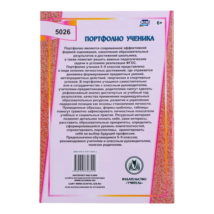 Папка «Портфолио ученика 5 - 9 класса», 8 грамот, А4 — Характеристики